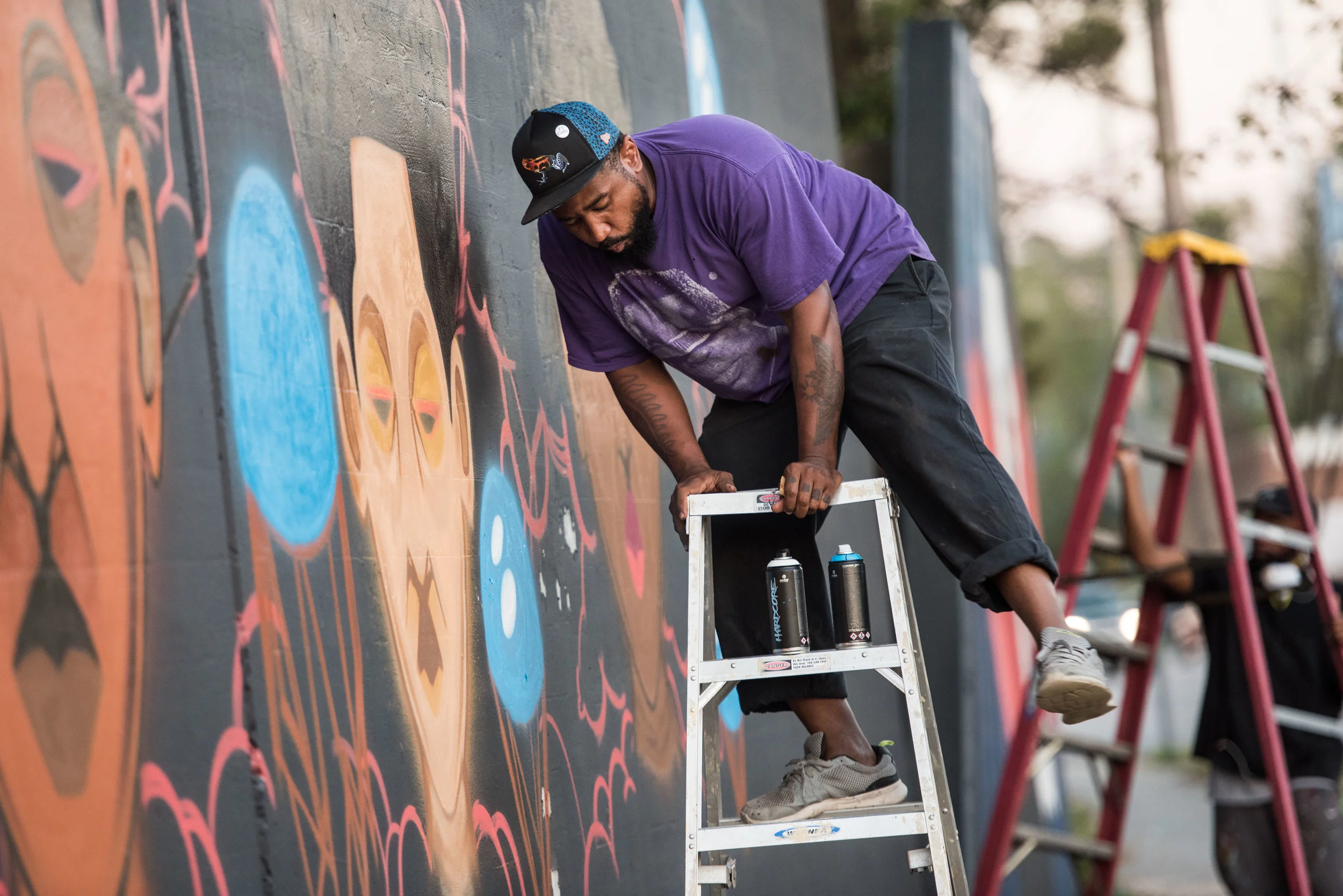 "I'm a little saddened I'm no longer gonna be painting down there cuz I kinda felt like we became part of the community. One of the guys the came through that was sorta like a street minister,” says Umoja, “He gave Karl a nickname. He called him "WB" -- "white boy." It was like, "WB, what's up man?" It was hilarious. And they really embraced us at the end of it all.