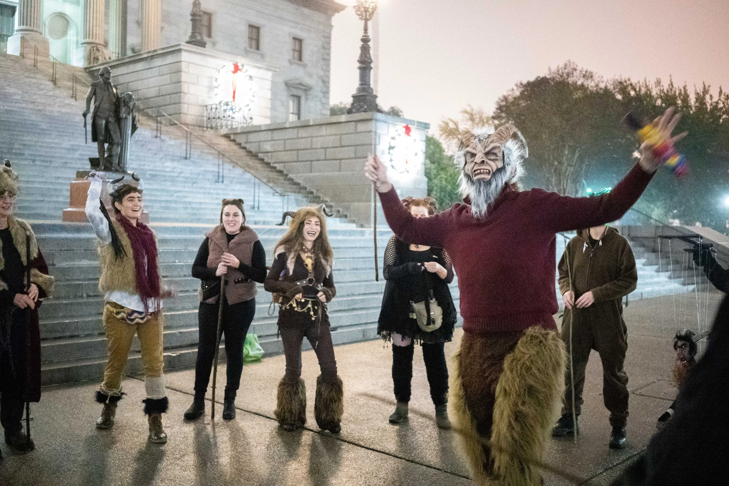 That was the question plaguing the Krampuses/Krampi walking from the state house to Art Bar on Tuesday night in Columbia, SC. Dressed with different characteristics of Krampus, a goat-devil anti-Santa who scares, kidnaps and punishes bad children, revelers celebrated Krampusnacht in the capital city with their yearly trek from the seat of state power to watering holes in the Vista.