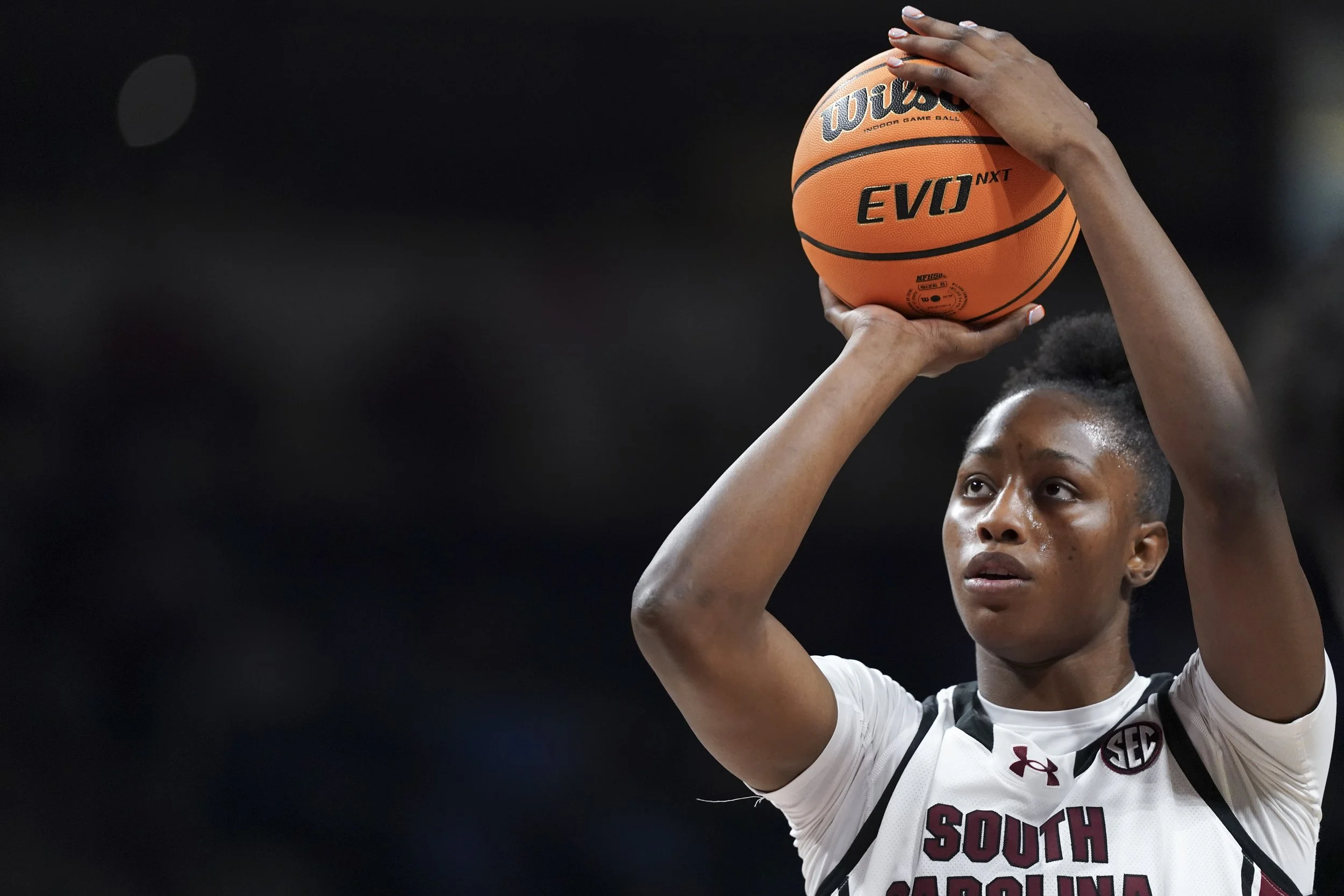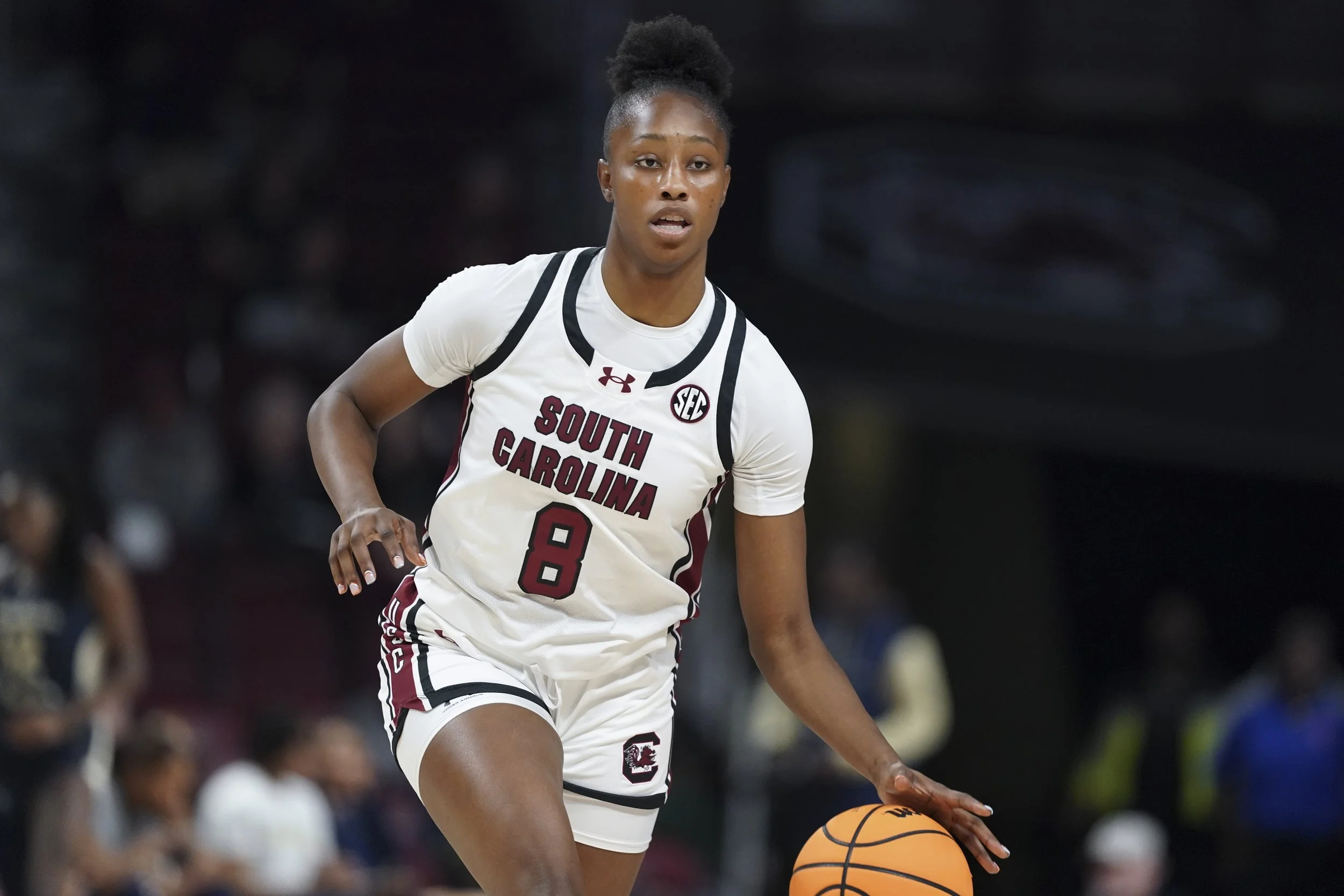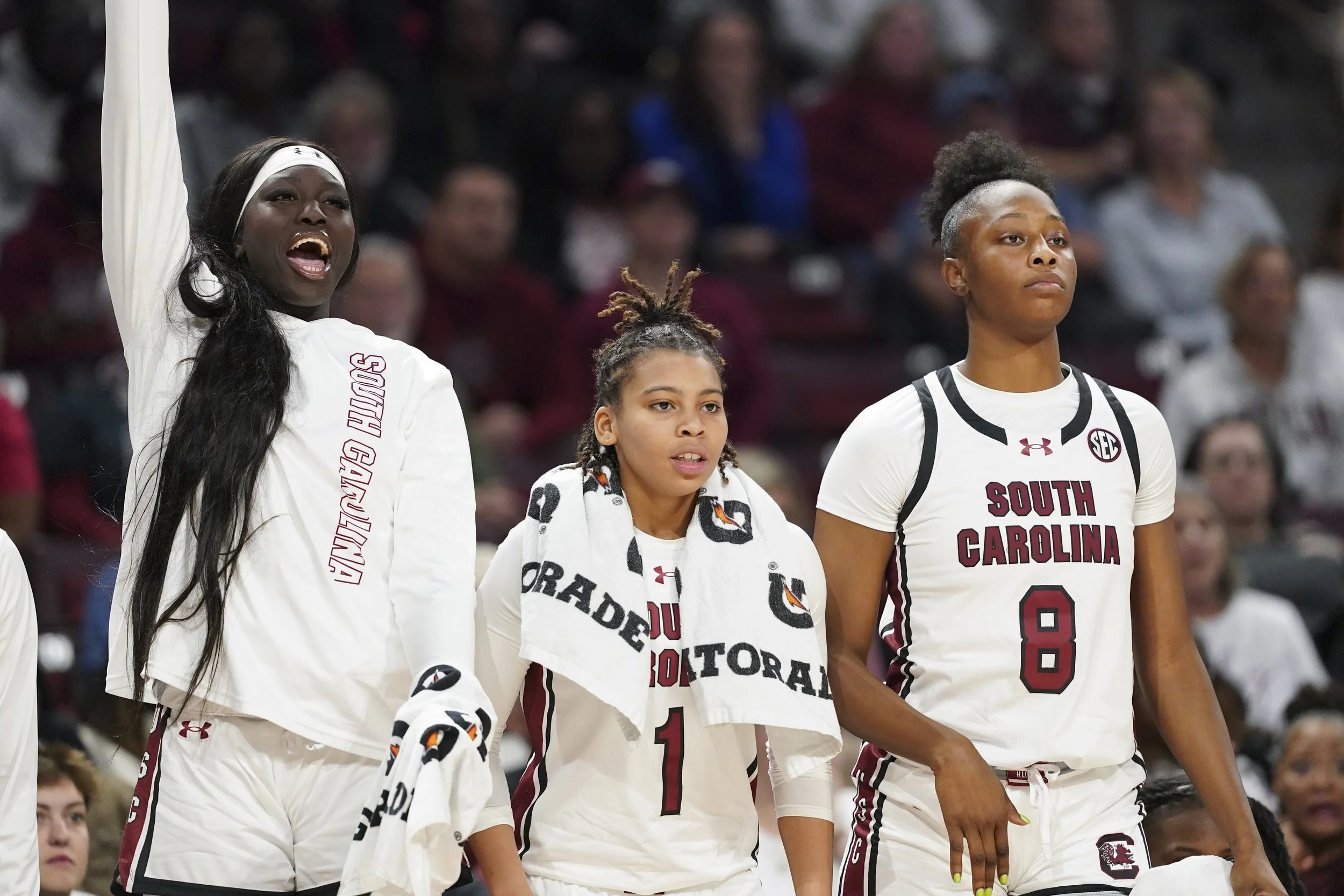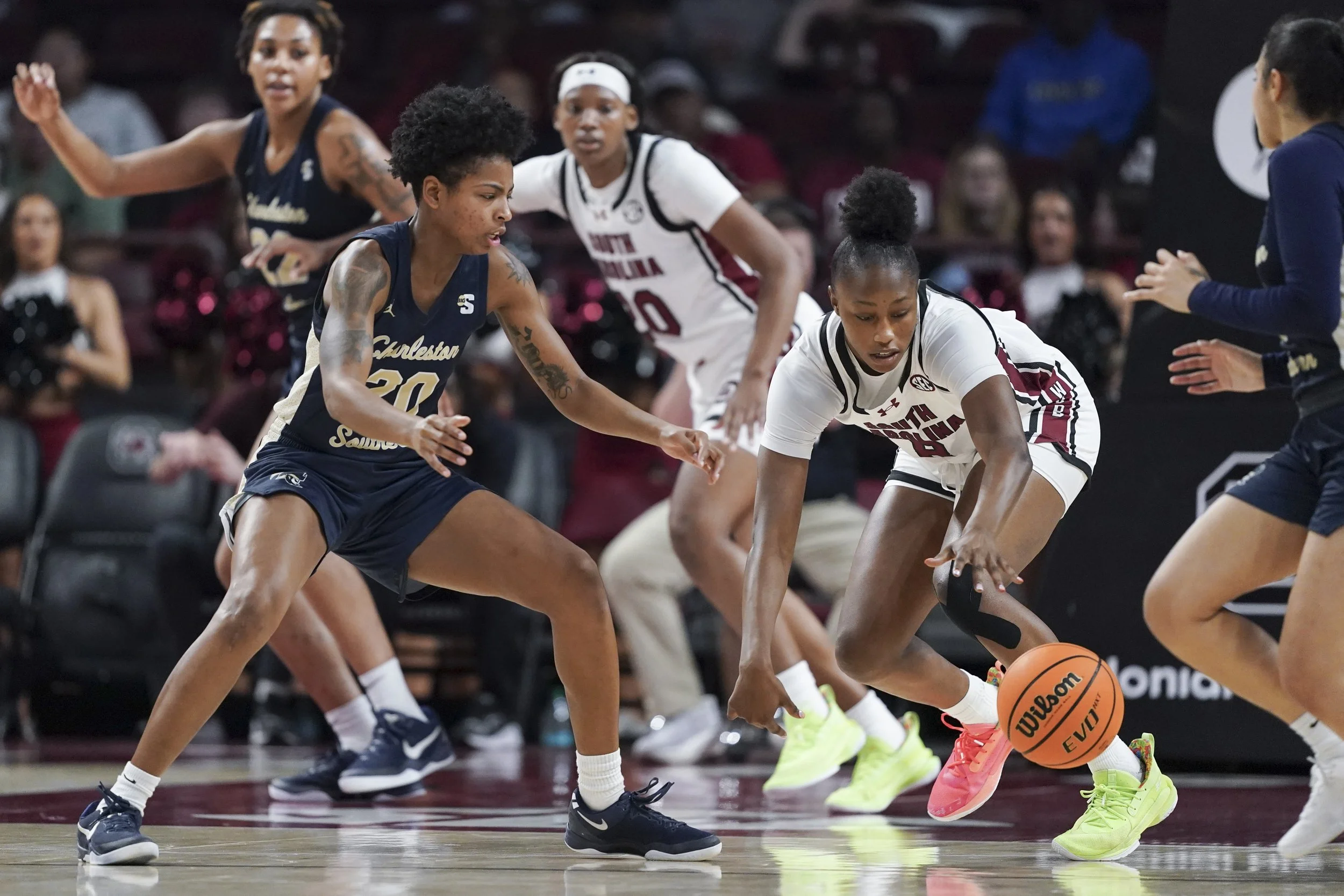 Joyce Edwards and the South Carolina Gamecocks vs. the Charleston Southern Buccaneers on December 19, 2024. (Photos by Sean Rayford for Getty Images)
