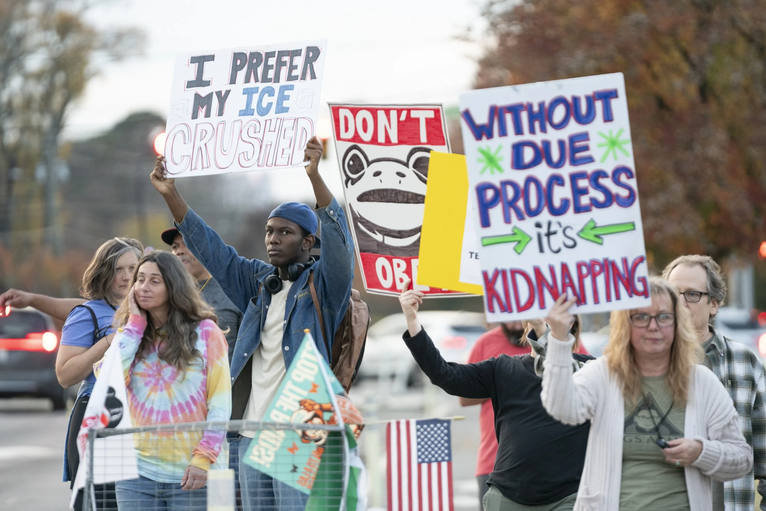 He lives down the street and it’s his first protest ever.