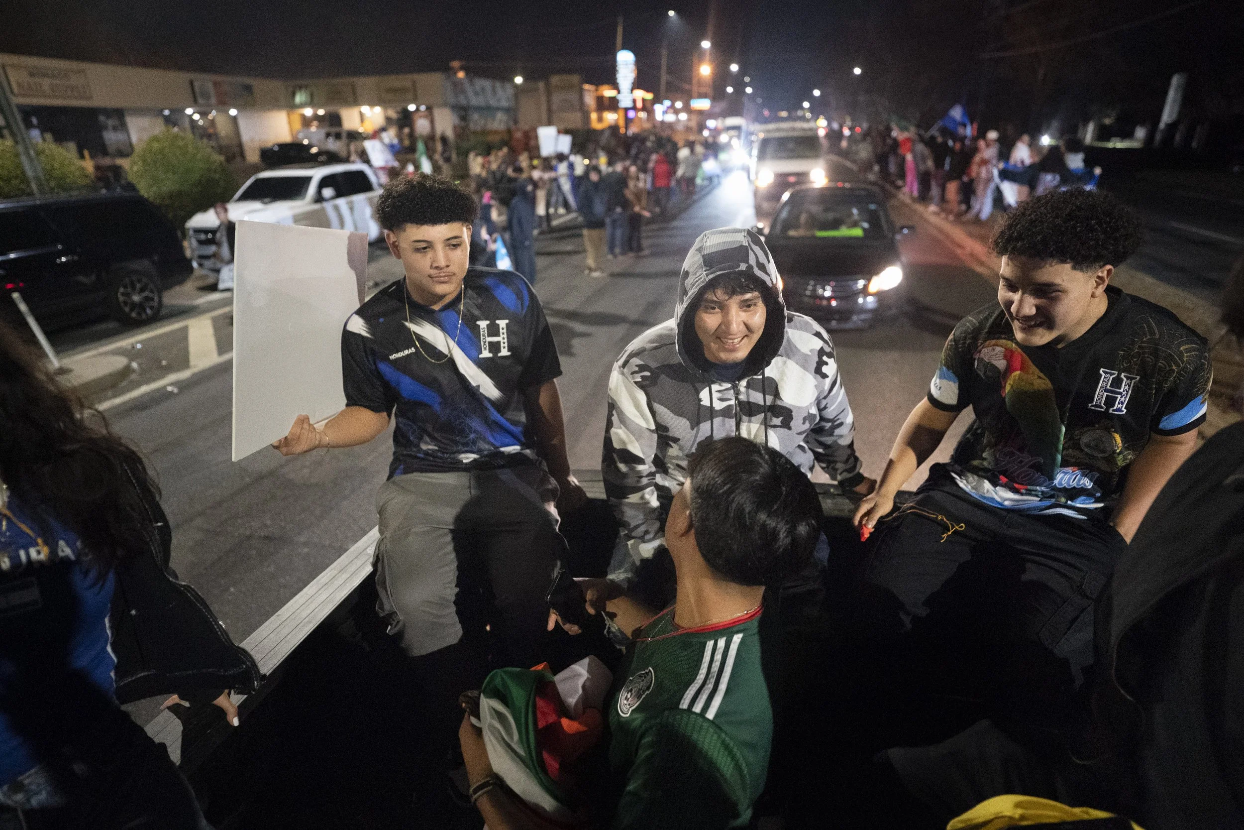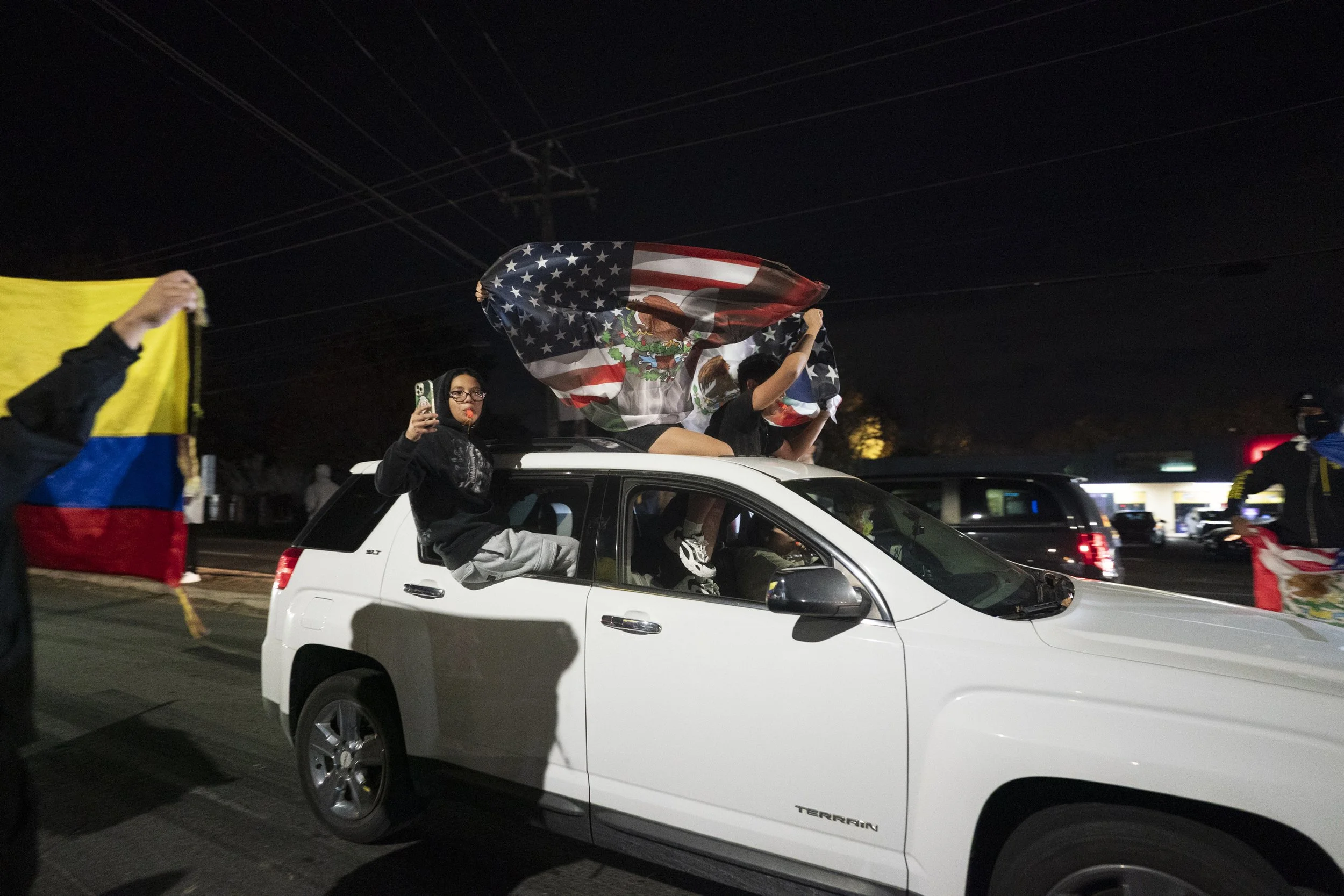 Local police are everywhere this evening — but mostly out of sight. Some appear to sit in the shadows. On one occasion they pursued someone in a nearby parking lot. Lights flashing, but no sirens - navigating the unusual crowds at reasonable speeds.