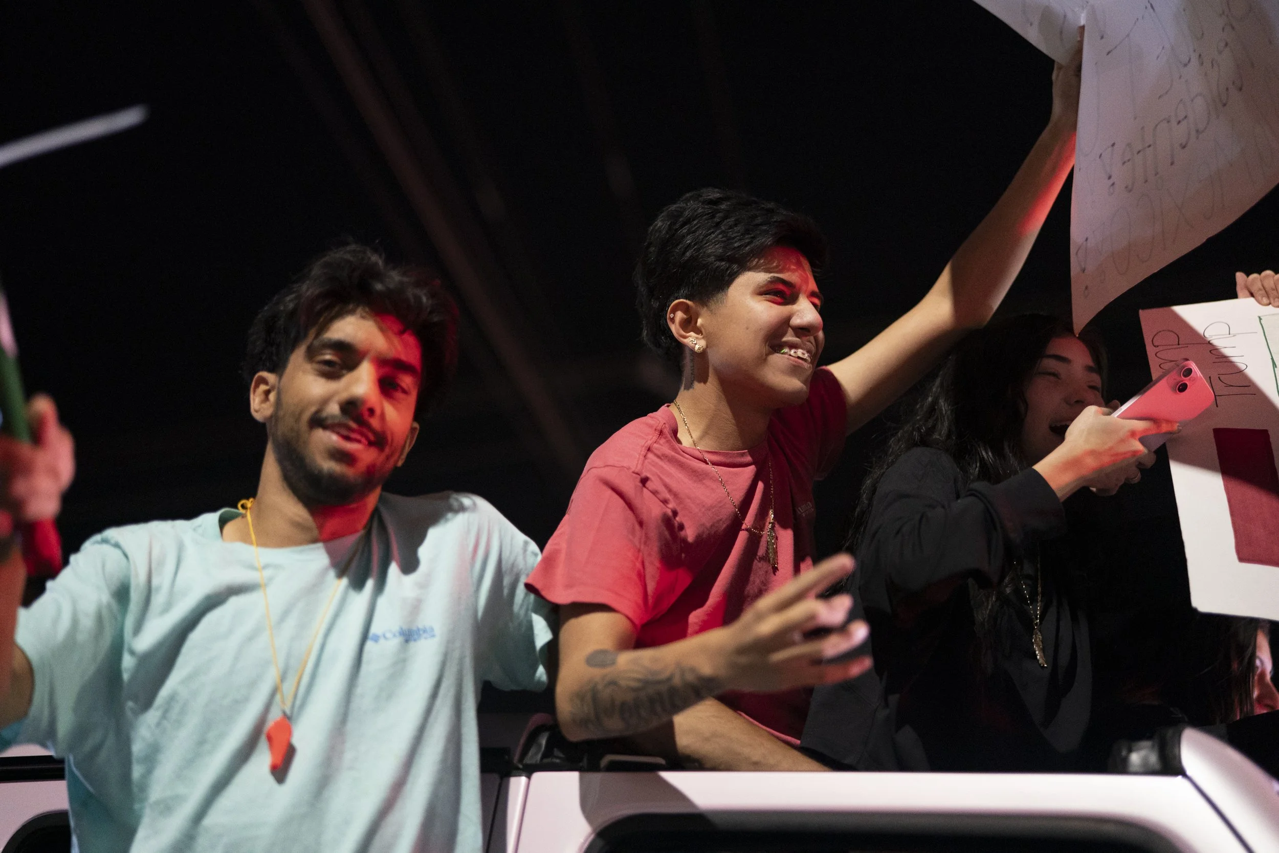 Baruch arrived before sunset and stayed for hours. Boisterous, one hand occupied with a sign and the other balled in a raised fist — the 18 year-old moved quickly through the crowd. Pumping up others, he’s like a linebacker team captain on the sideline after a pick-6.