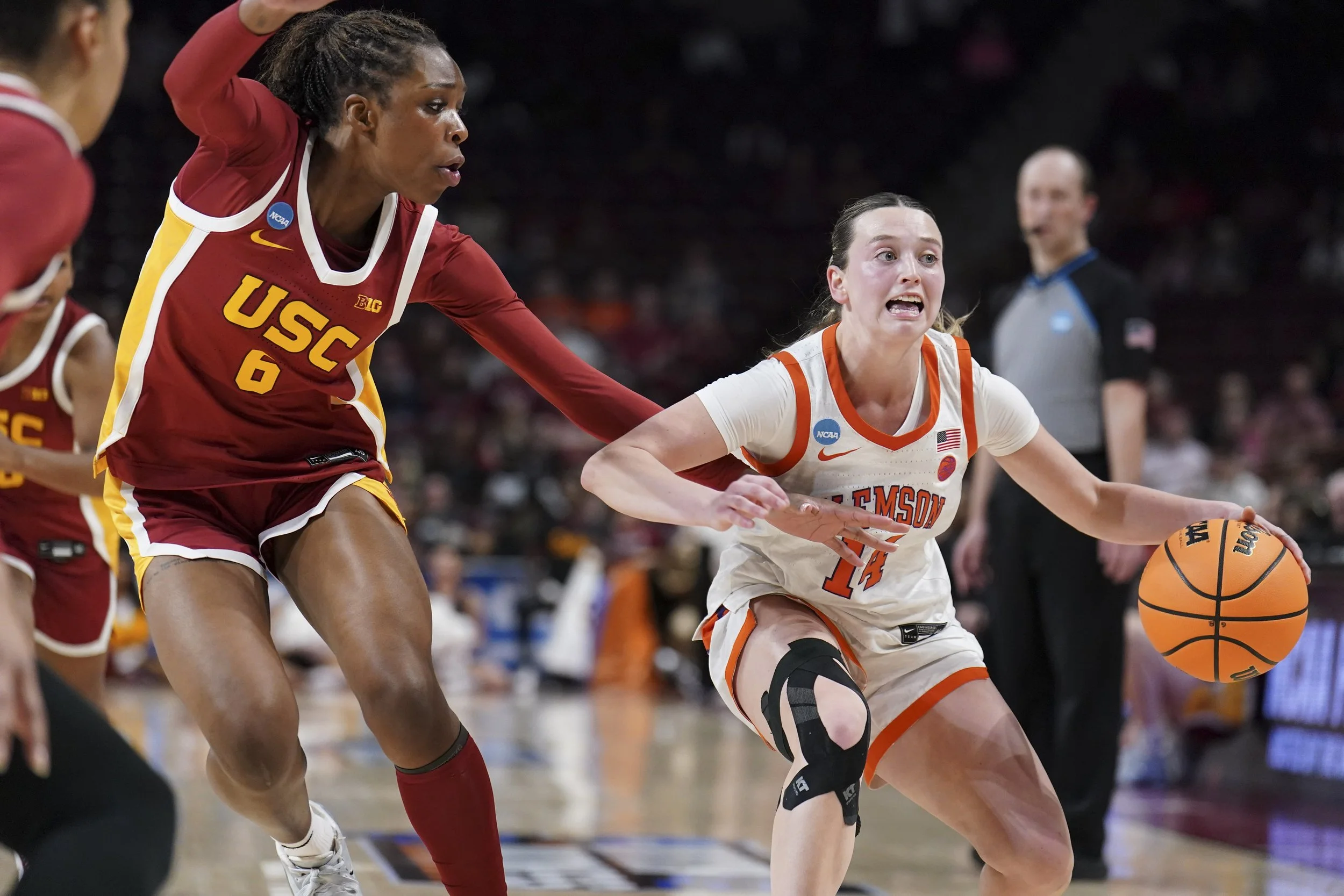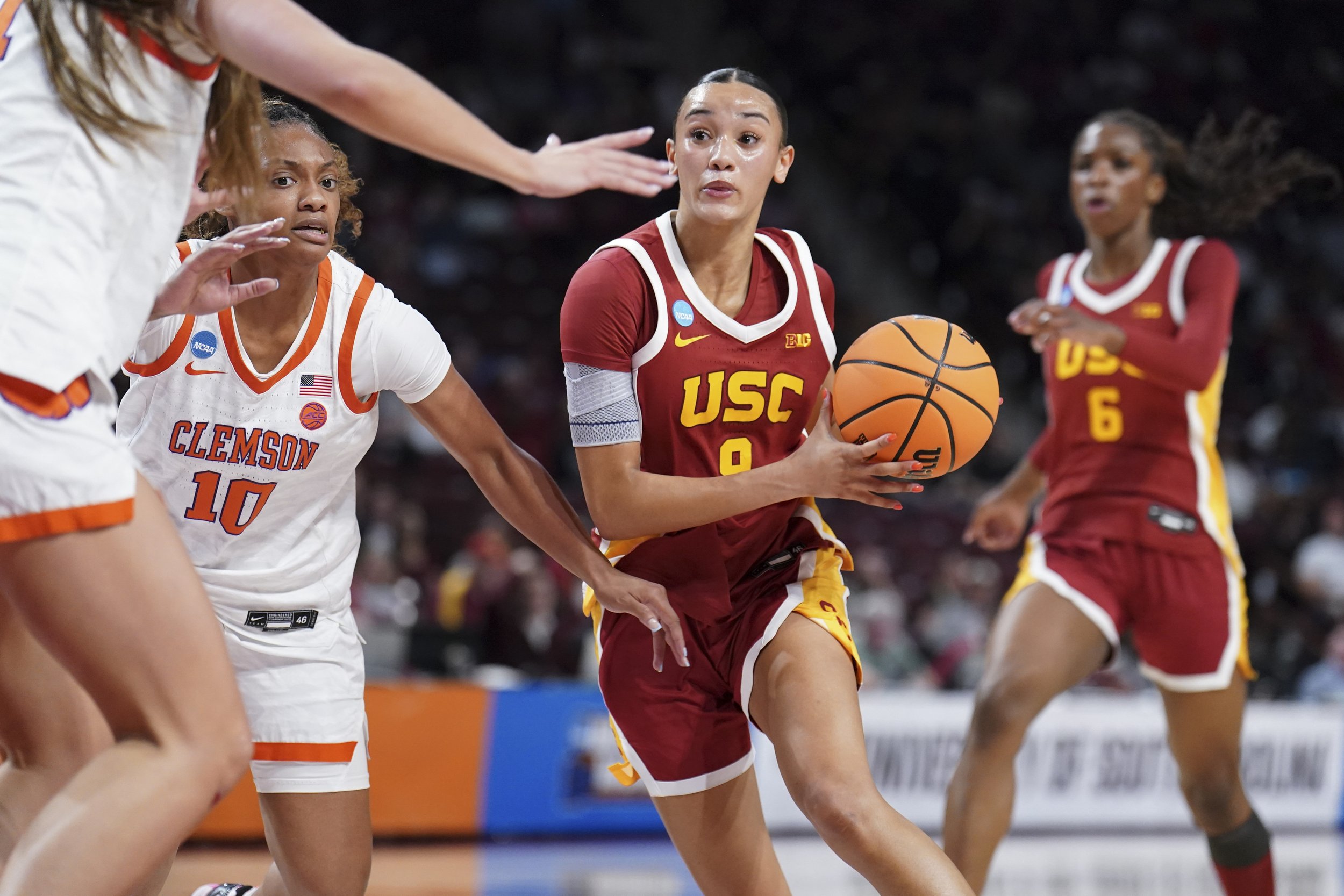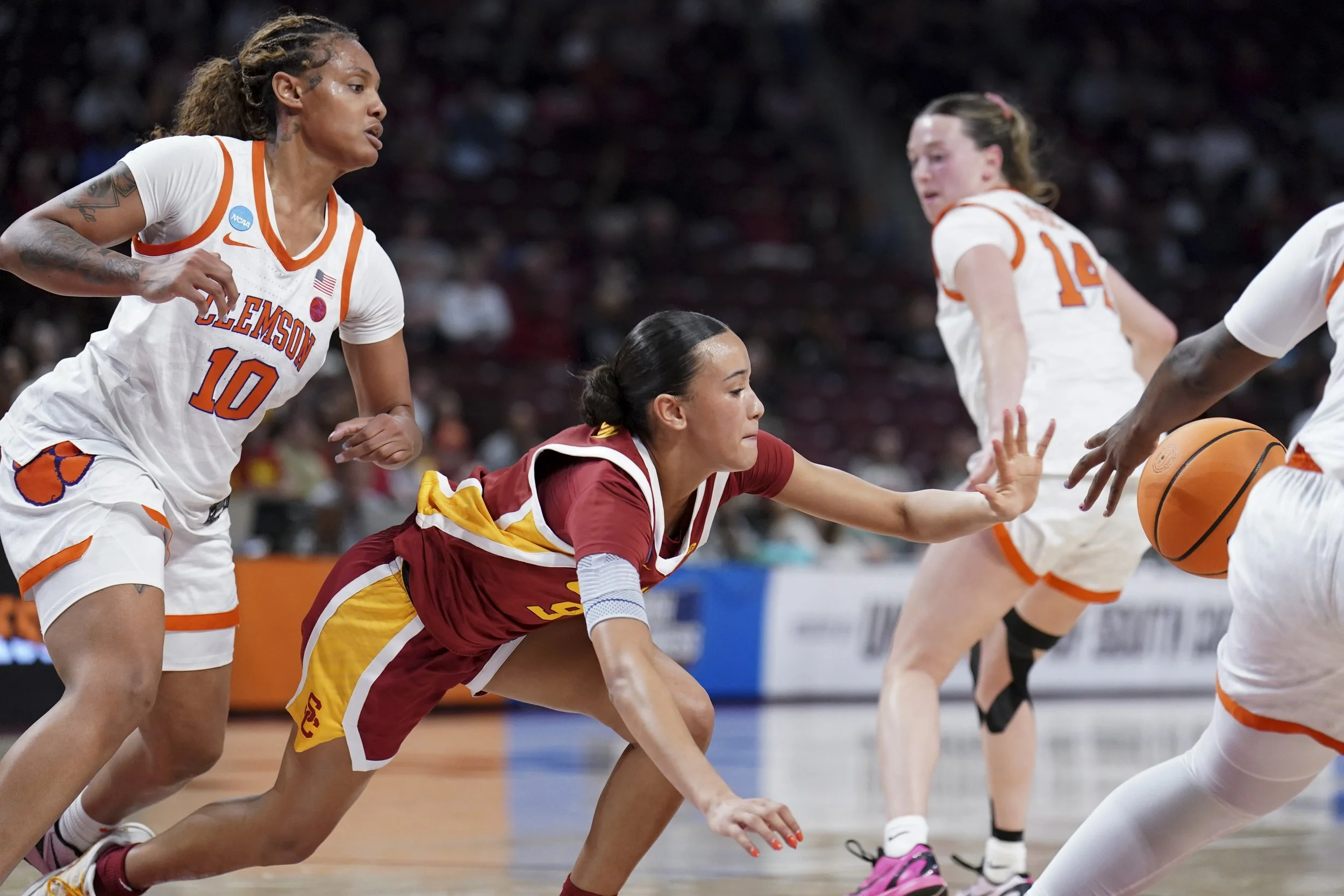 Southern California defeated Clemson in overtime on Saturday to advance to the second round, setting up USC vs. USC on Saturday. Jazzy Davidson led the Trojans with 31 points.