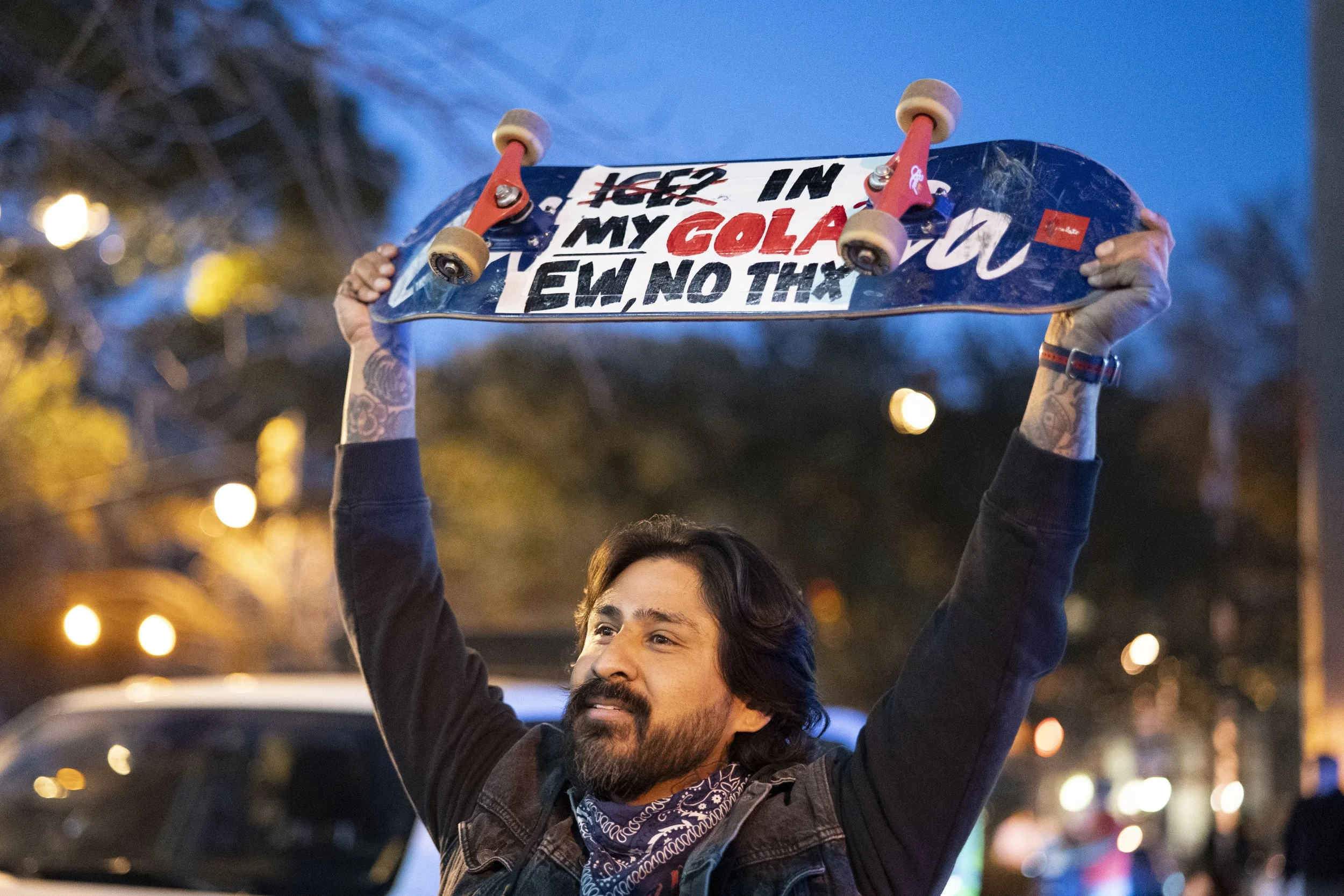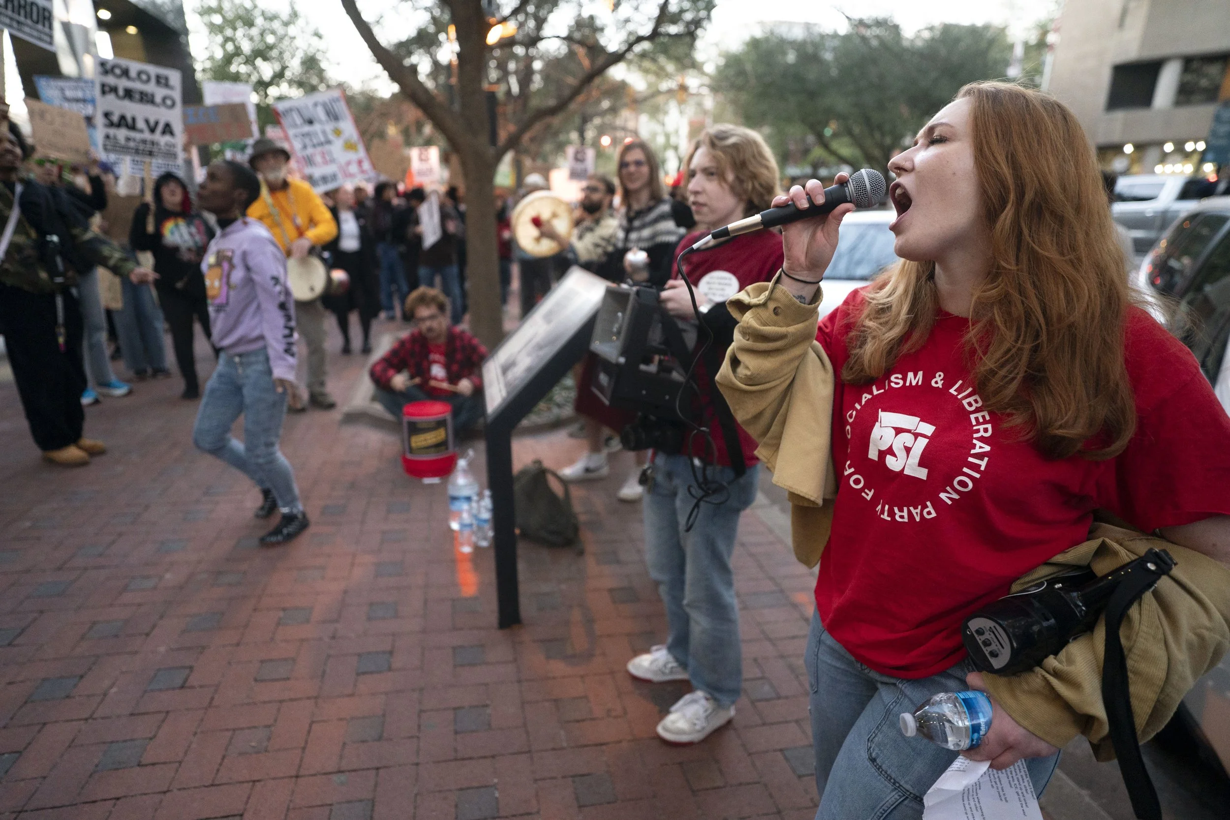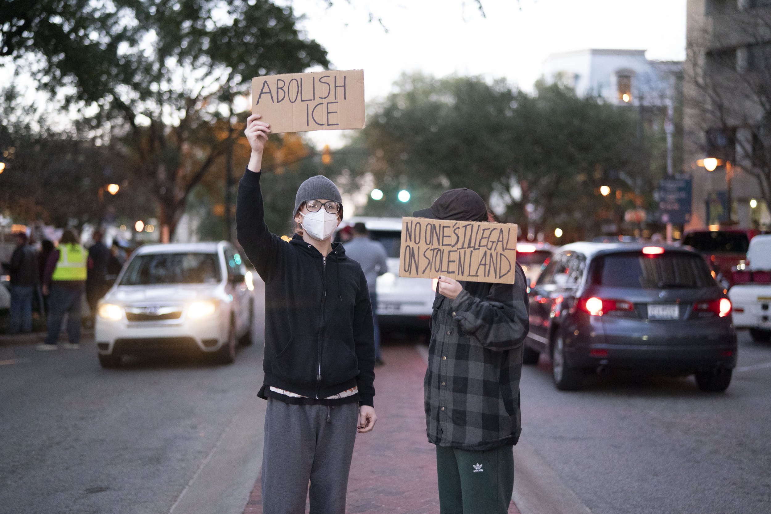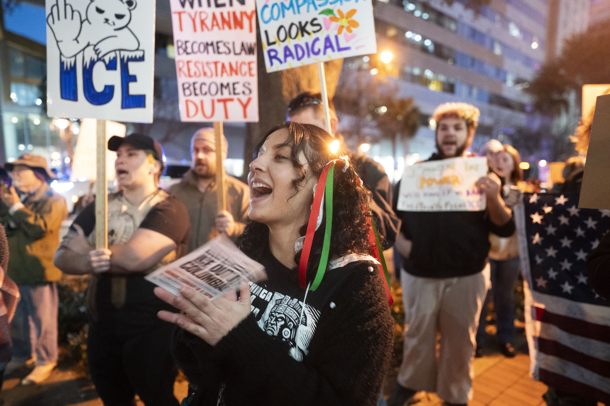 “They like to tell us that immigrants are our enemies. We refuse to be divided by that lie. We won’t let them strangle Cuba, we won’t let them target the immigrant communities in Columbia—because we are one united movement. And we refuse to be divided by their lies,” said Anson Foster, into a bullhorn just after sunset.