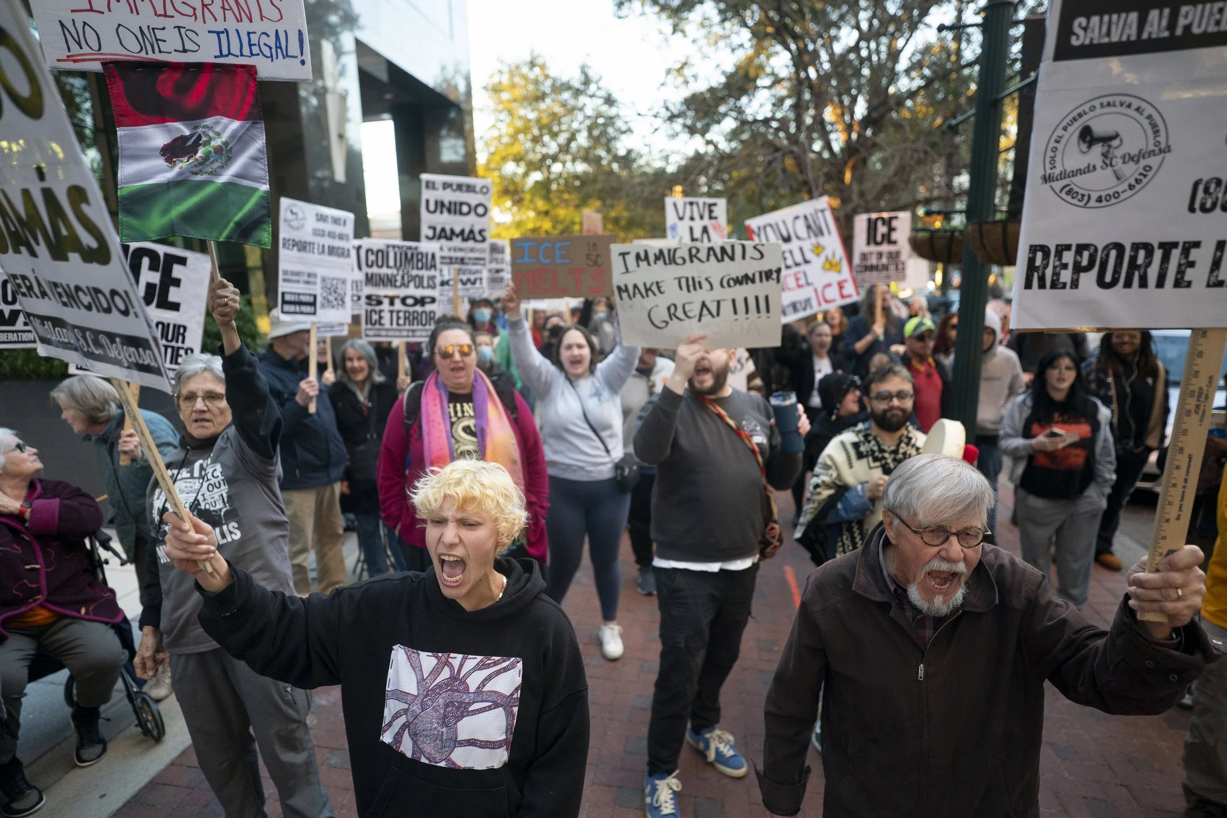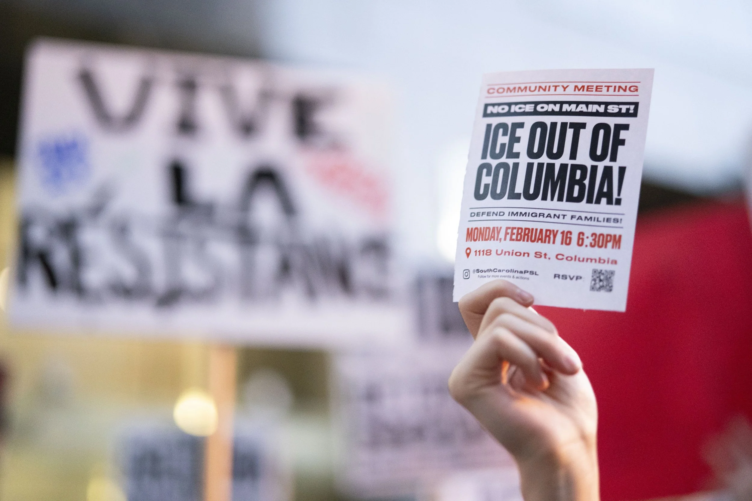 “We are outraged that a contract of this magnitude moved forward without transparency or accountability from our community. ICE’s growing presence in the heart of our city will not make Columbia safer. It will deepen fear, fracture trust, and place our neighbors at greater risk. And still, we are hopeful. We believe South Carolinians will continue to show up, loudly, visibly, and in solidarity. When harm is done in the dark, communities organize in the light,” said Carey Shofner, spokesperson for Midlands SC Defensa earlier in the week about the protest.