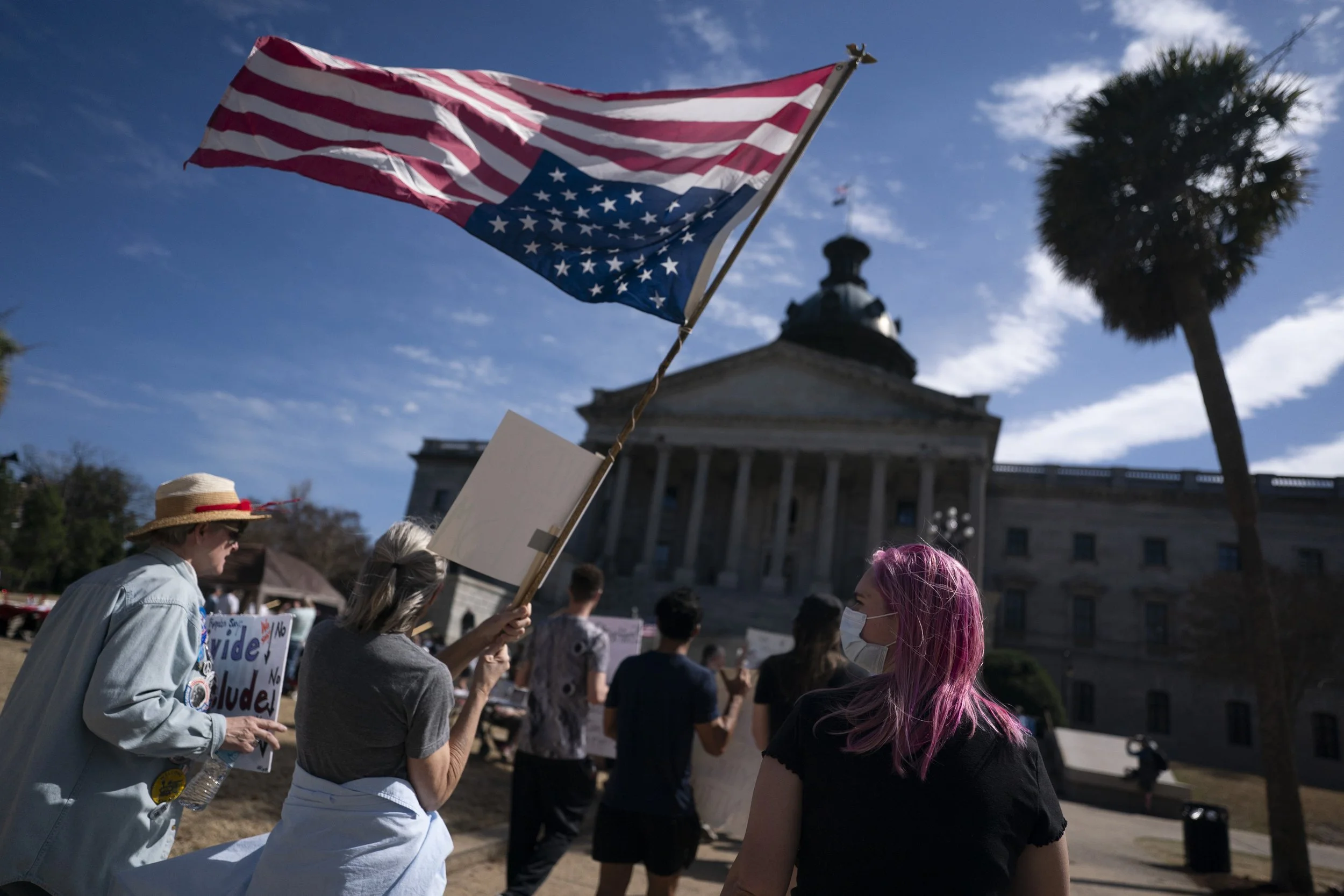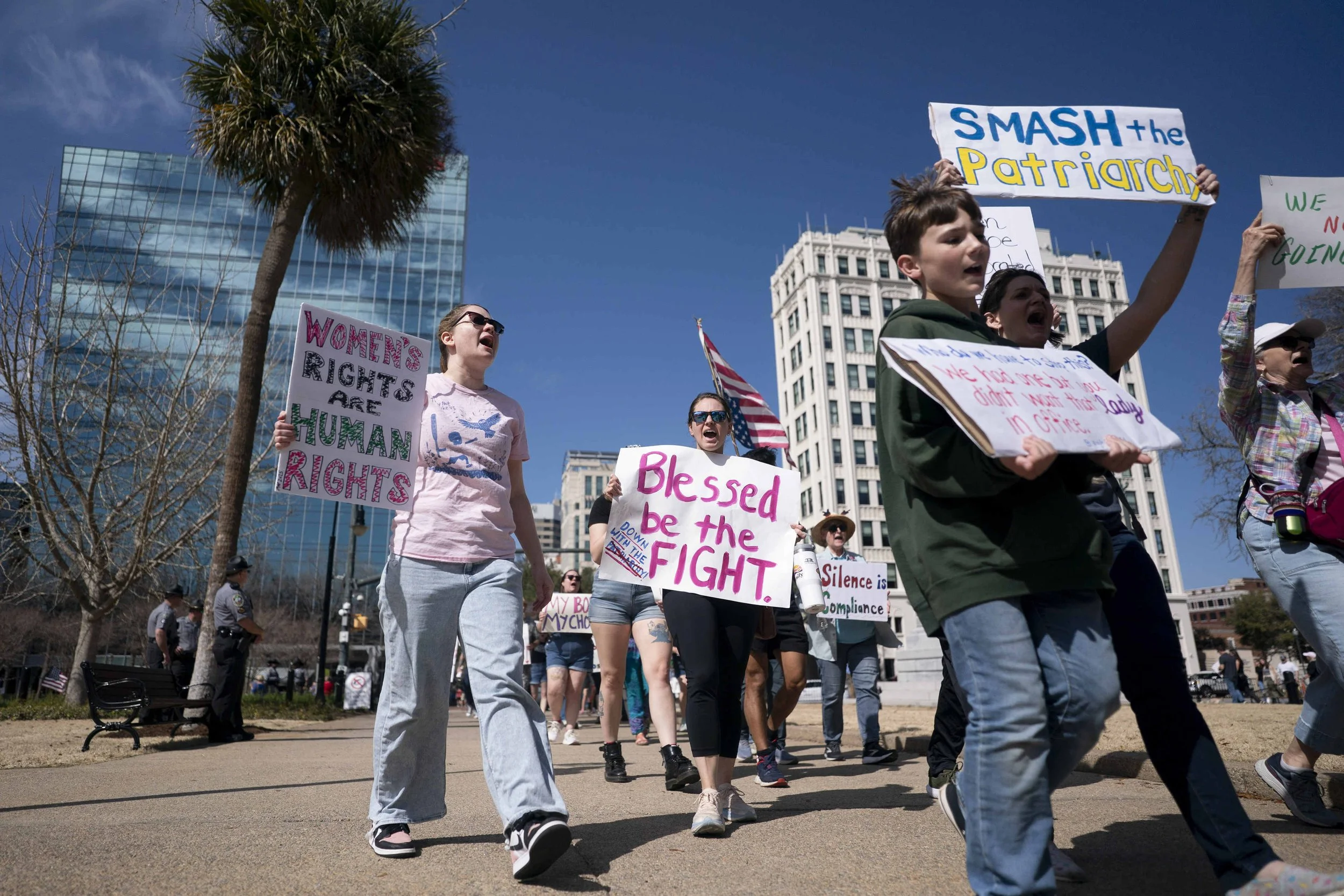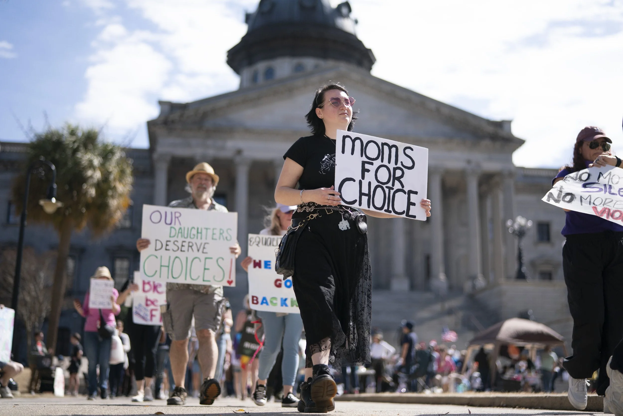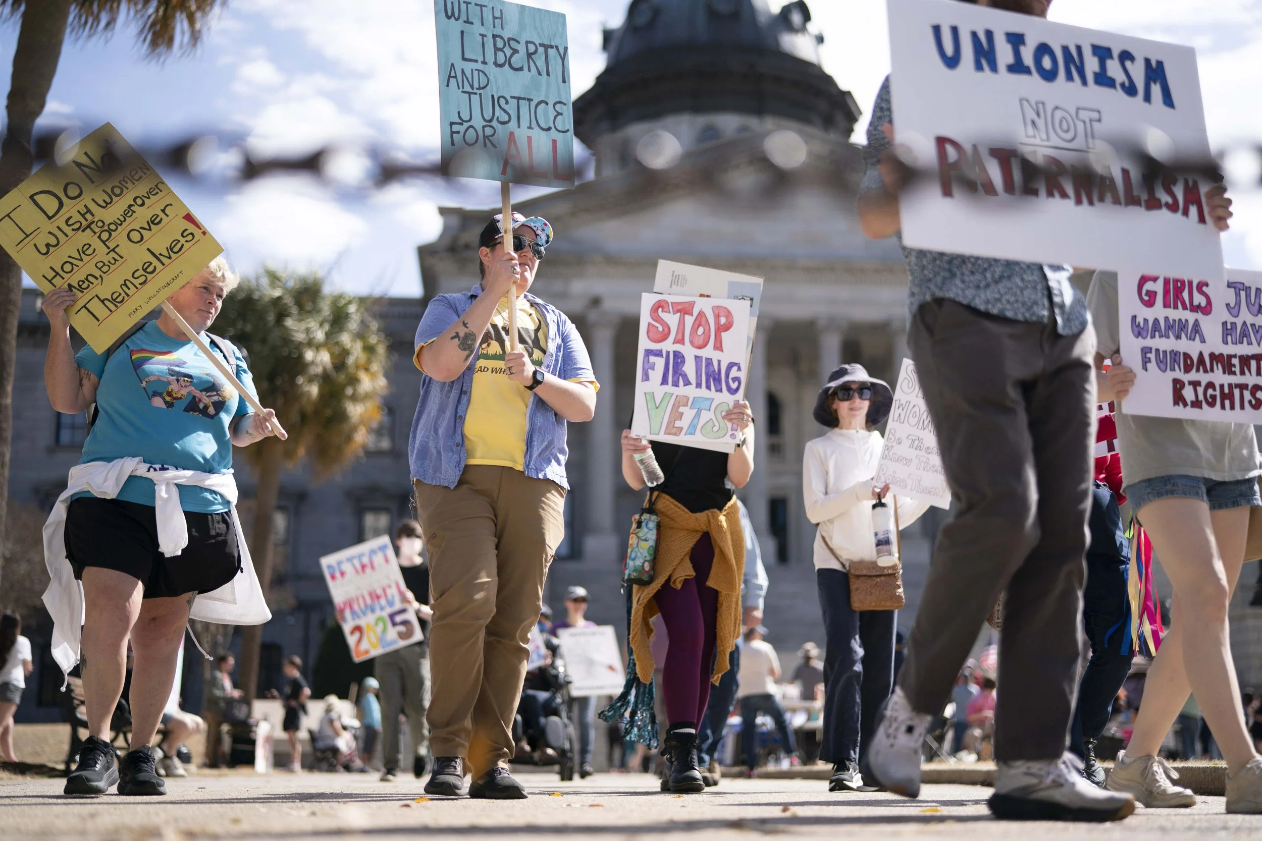 “My grandmother was a nurse in World War II. She married her patient, a young Olympia, South Carolina native who lost his eyesight in France. And she birthed three girls who gave my grandparents eight grandchildren,” said Mary Wood, from the steps of the South Carolina statehouse on Saturday afternoon, as about 200 demonstrators rallied for International Women’s Day in Columbia.