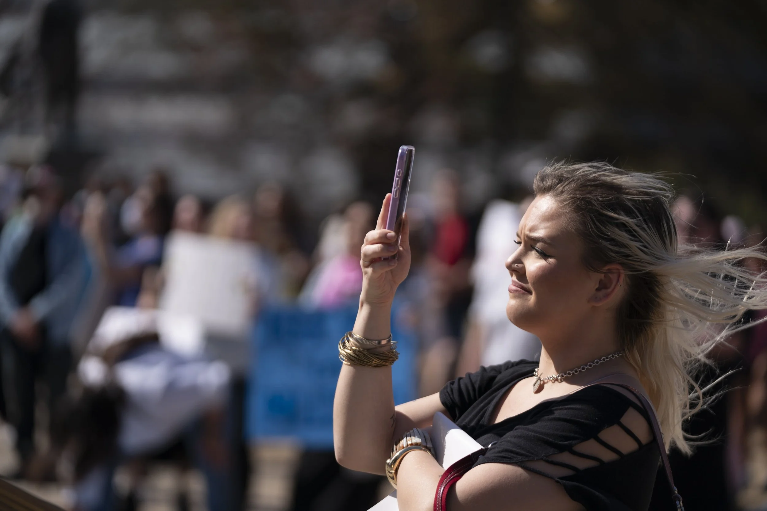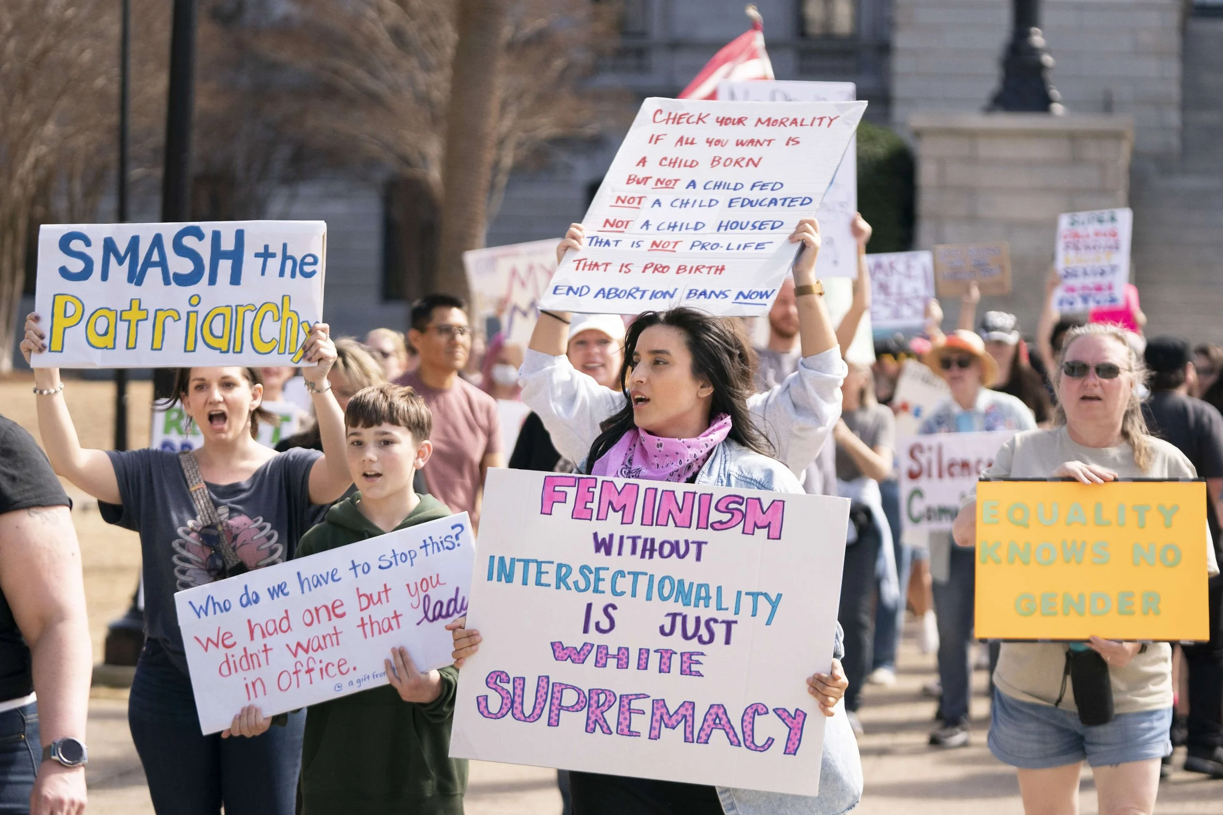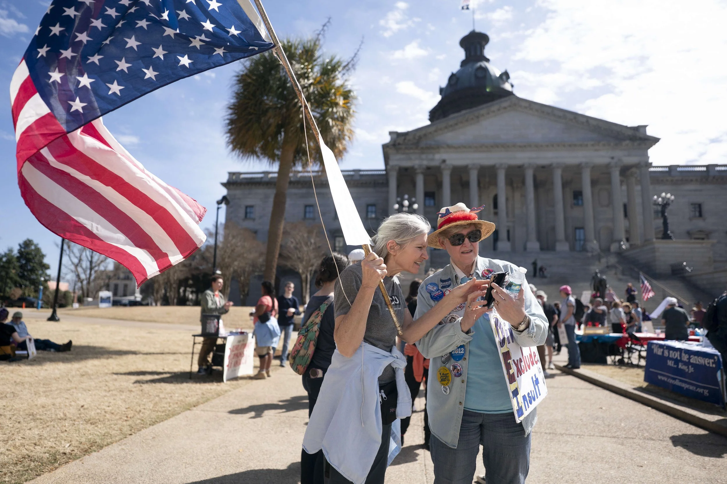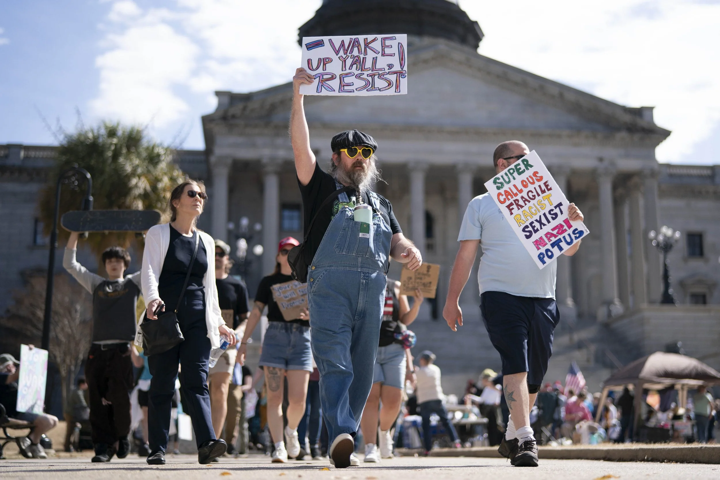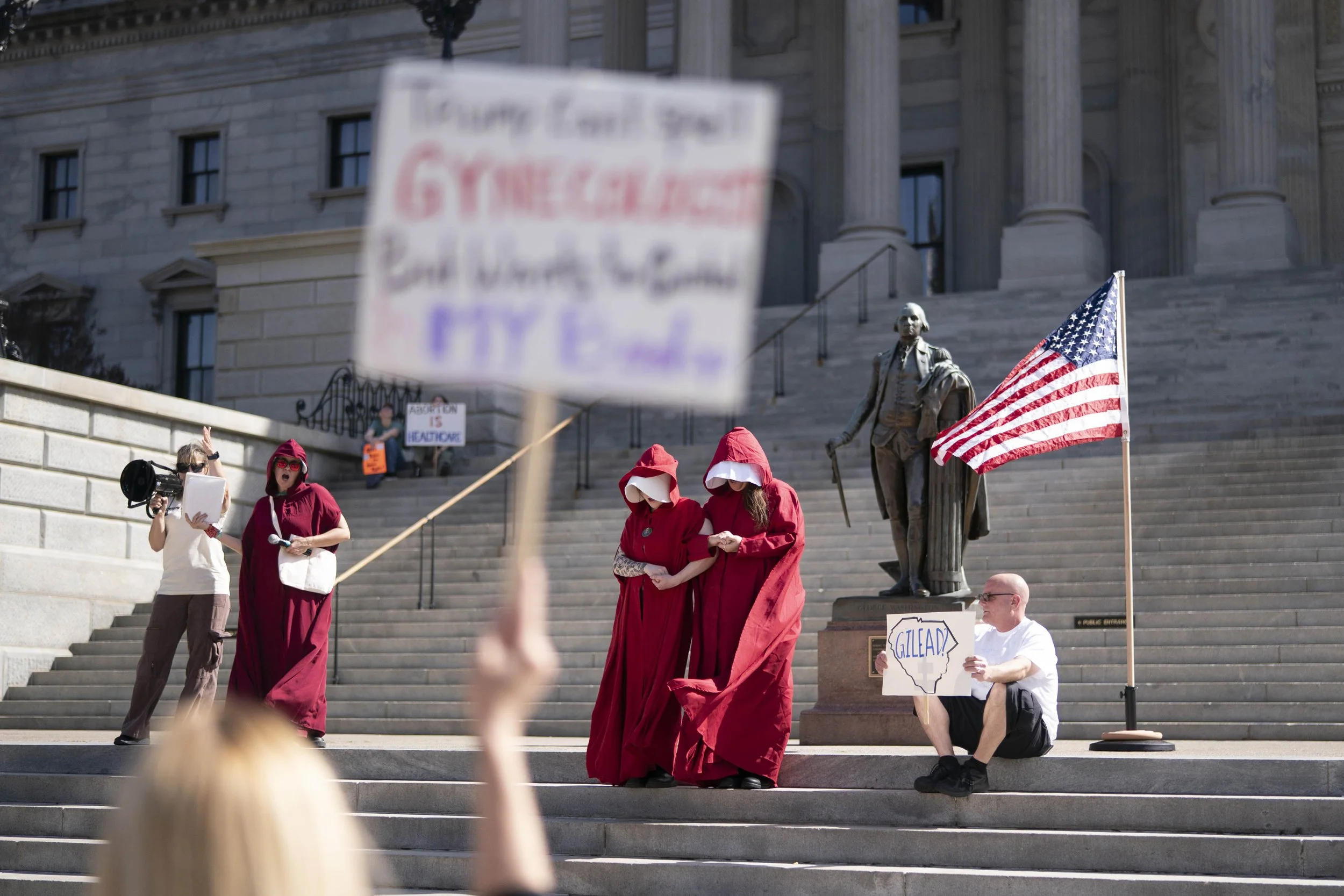 “My grandmother was a nurse in World War II. She married her patient, a young Olympia, South Carolina native who lost his eyesight in France. And she birthed three girls who gave my grandparents eight grandchildren,” said Mary Wood, from the steps of the South Carolina statehouse on Saturday afternoon, as about 200 demonstrators rallied for International Women’s Day in Columbia.